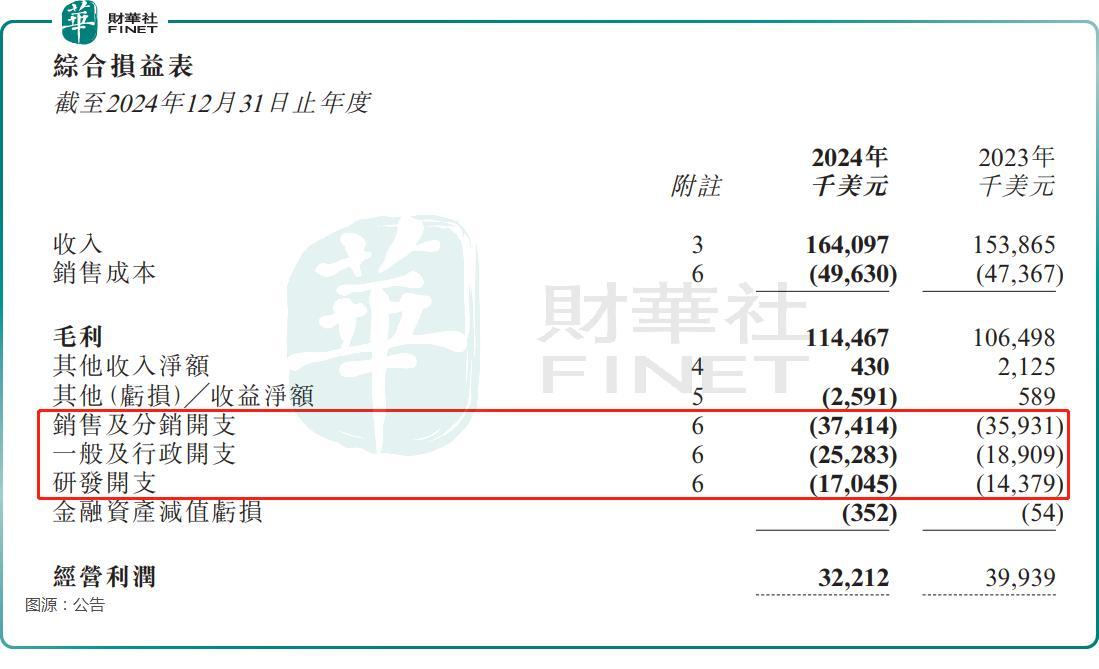 对此,业聚医疗解释称,由于在2023年底收购了三家企业,集团于2024年进行了重大整合工作并产生额外经营开支950万美元。若撇除该等额外经营开支,销售及分销开支、一般及行政开支以及研发开支总额于2024年均持平。